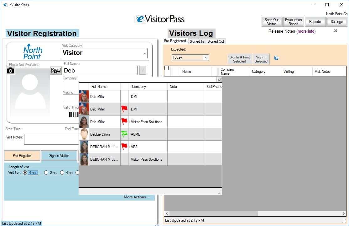 If you select one of them, the name and any saved visitor information will populate on the screen.